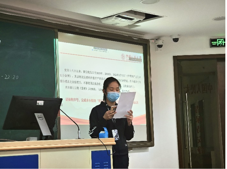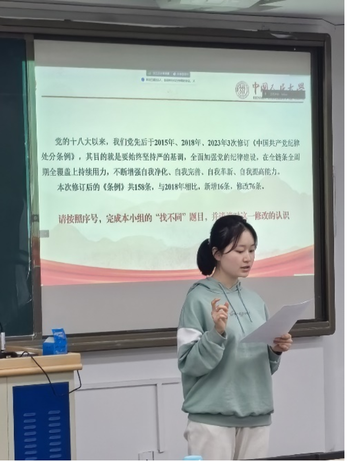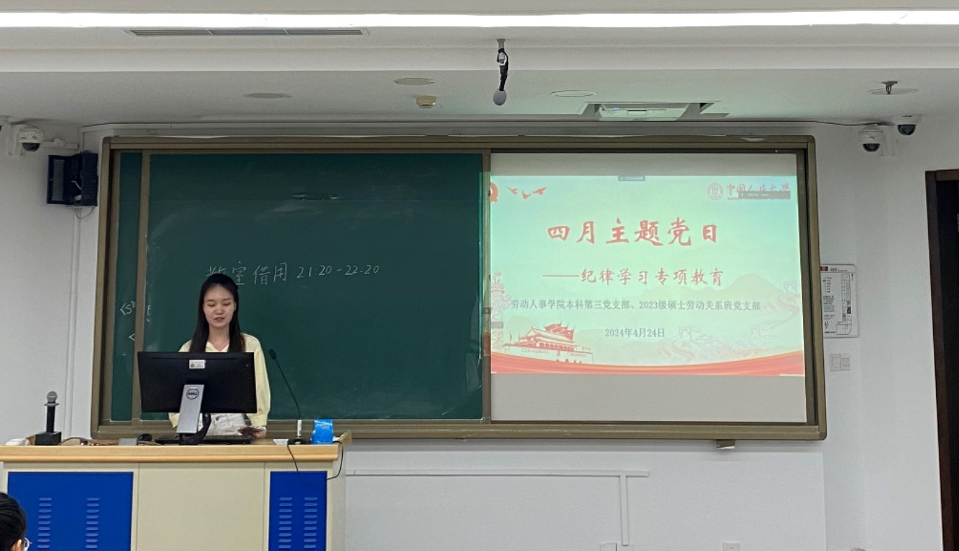 4月24日,赌博网站大全导航站 本科第三党支部联合2023级硕士劳动关系班党支部开展主题党日活动,以新修订的《中国共产党纪律处分条例》为契机,开展集中性纪律教育,营造学纪、知纪、明纪、守纪的浓厚氛围,将纪律教育融入学生党员的日常,加强学生党员的纪律意识。本次会议由赌博网站大全导航站 本科第三党支部宣传委员卢泽云主持,两个支部的党员和若干积极分子参加会议。