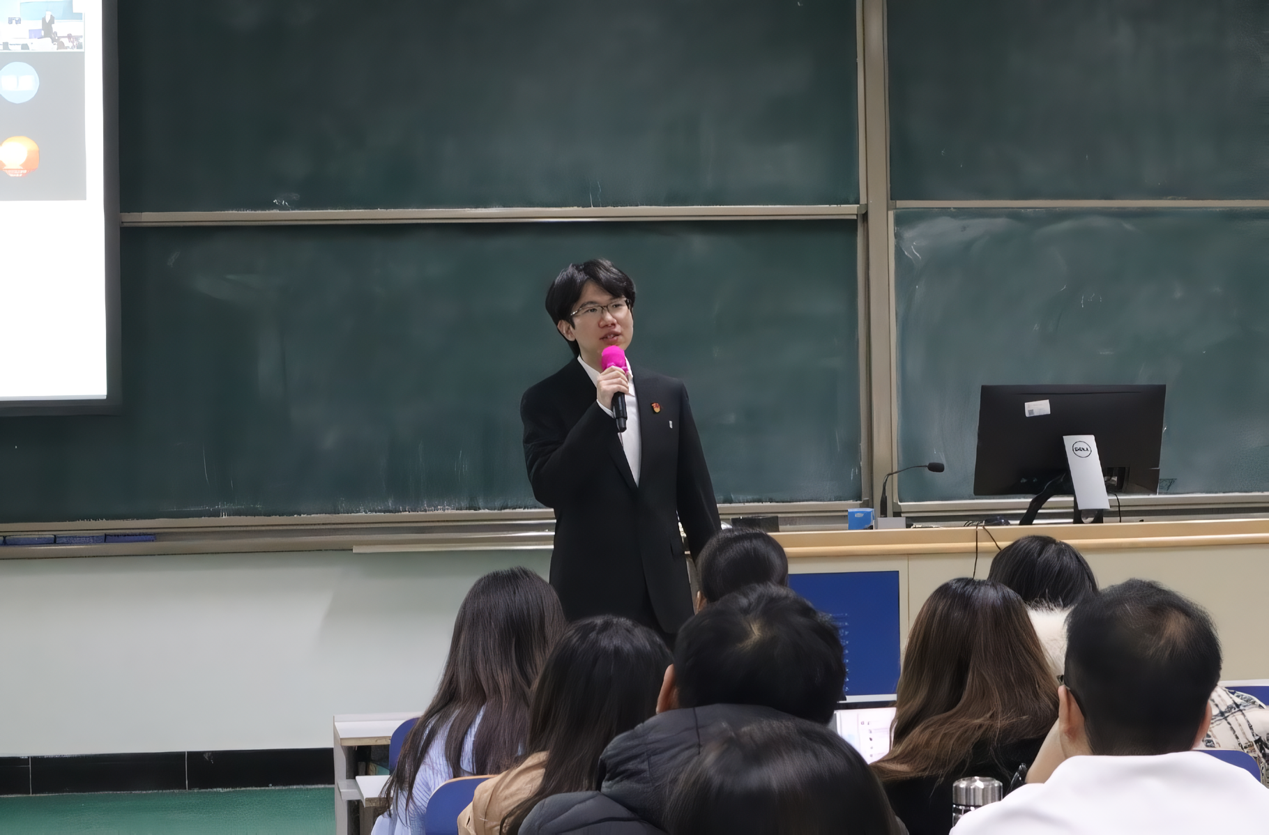 首先,活动主持人、2023级硕士人力资源管理1班党支部书记厉姿含同志向大家介绍了此次党日活动的主要目的、内容以及出席此次活动的成员,联学活动正式拉开帷幕。