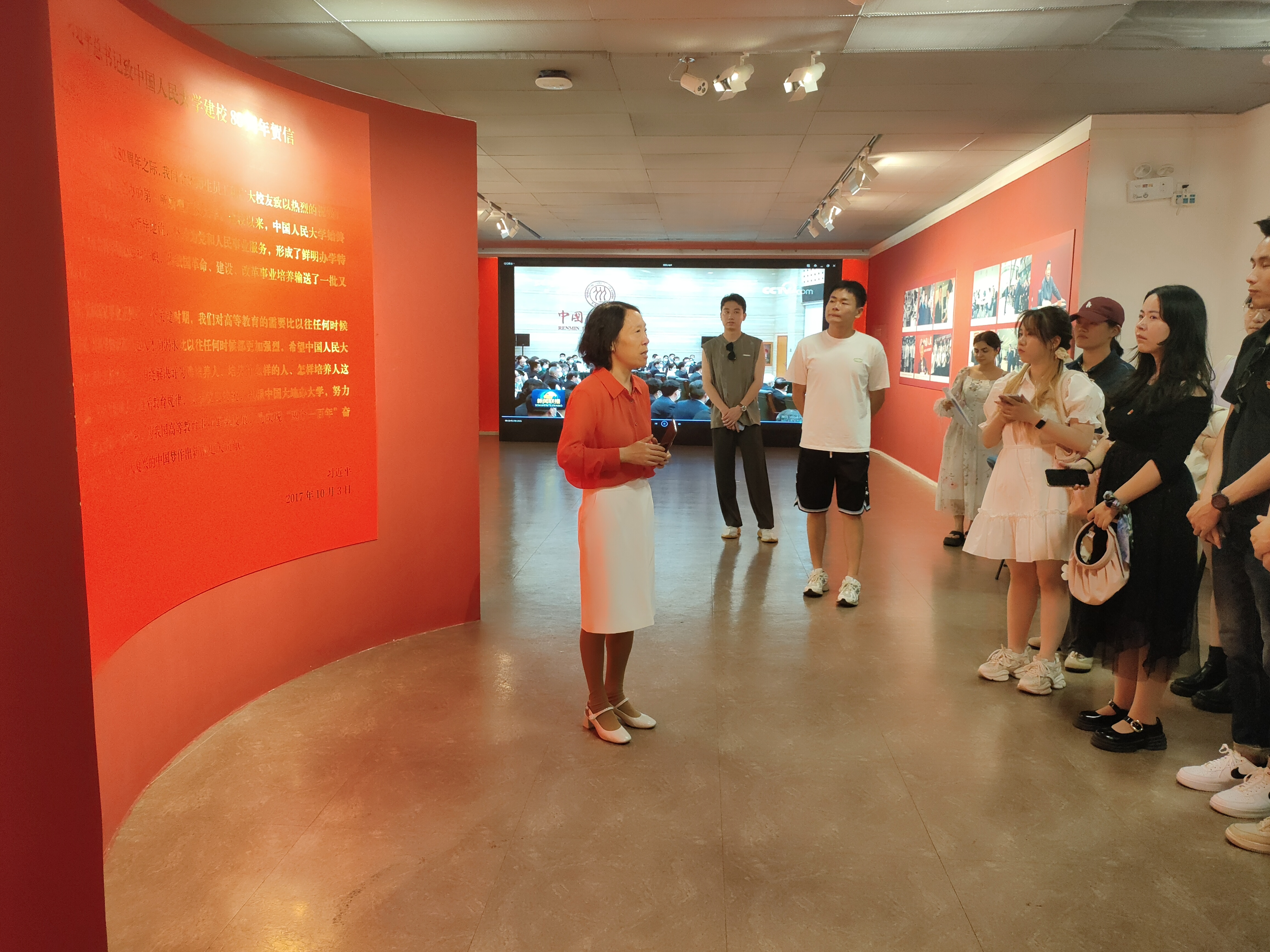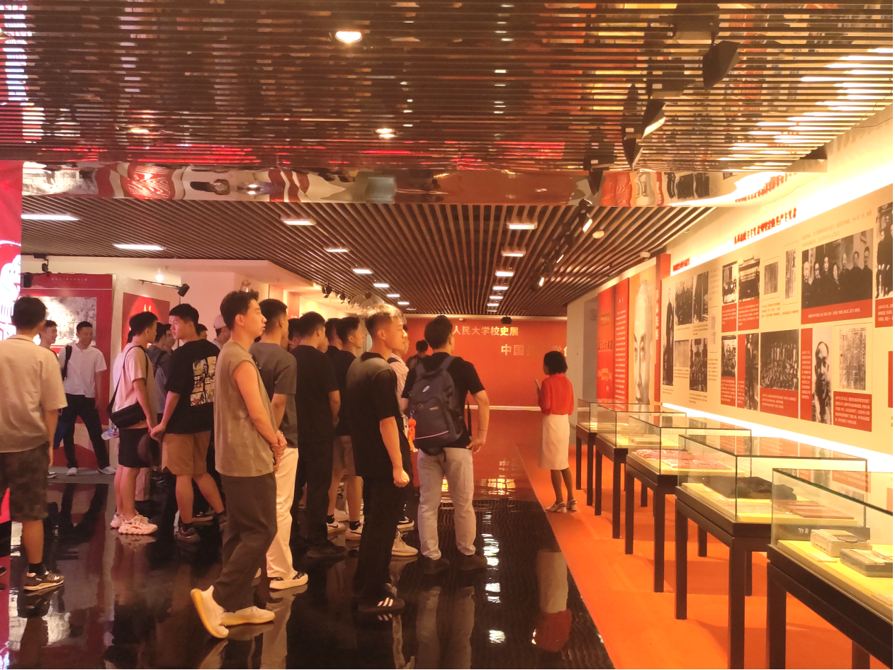 紧接着,张老师又带领大家参观了“中国人民大学校史展:中国共产党创办新型正规大学的典范”。展览按照学校历史沿革,生动诠释了中国人民大学在抗日烽火中诞生,在党的关怀下成长,在新时代踔厉奋进的光荣革命传统和鲜明红色基因。通过本次参观校史展,各位参访同志进一步系统学习了习近平总书记在中国人民大学考察时的重要讲话精神,认识到正是党的坚强领导和严明的纪律要求,使得中国人民大学能够在各个历史时期保持正确的方向,为国家的发展和民族的复兴作出巨大贡献。