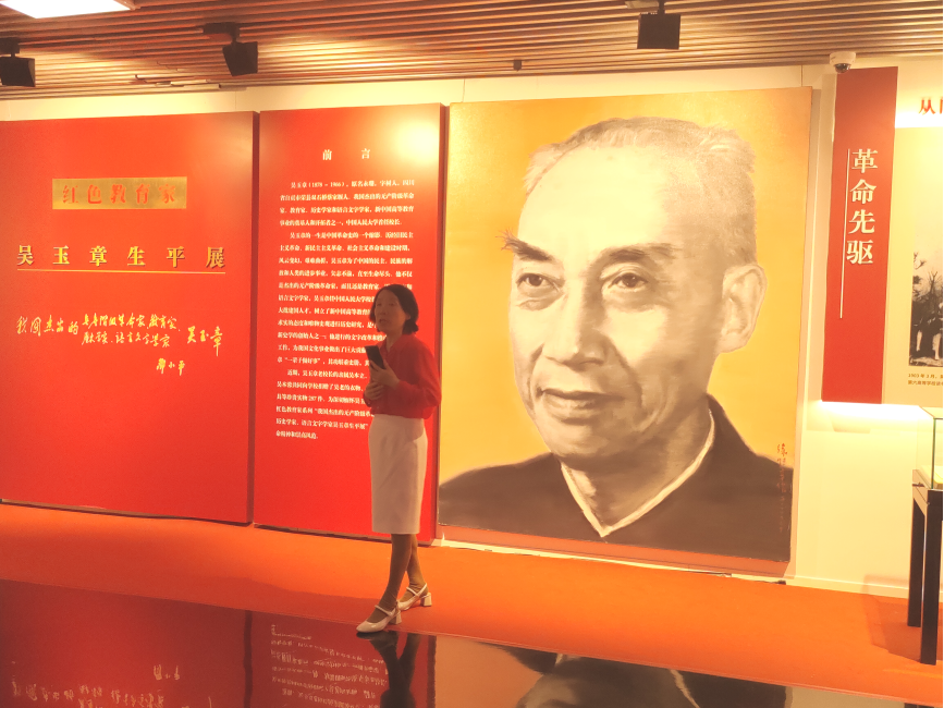 张学红老师首先向大家介绍了“红色教育家”吴玉章校长的生平展,并对展品进行了精彩详尽的讲解。通过讲解与参观,参访同志了解到吴玉章校长的一生历经旧民主主义革命、新民主主义革命,社会主义革命和建设时期,为了中国的民主、民族的解放和人类的进步事业,矢志不渝,直至生命尽头。各位同志表示,新时代青年要坚持继承和发扬忠诚于党、忠诚于人民的精神。