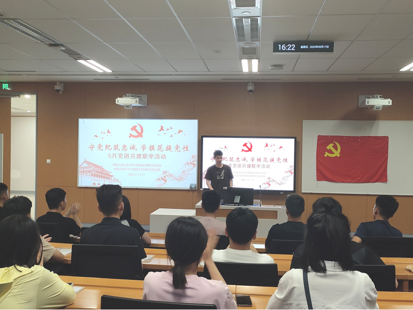 2024年5月17日下午,赌博网站大全导航站 2023级硕士劳动经济班党支部联合中国人民公安大学2023级硕士二中队犯罪学区队党支部开展“守党纪筑忠诚 学模范提党性”主题党日活动,活动由两支部书记主持,两支部党员及入党积极分子共同参加。