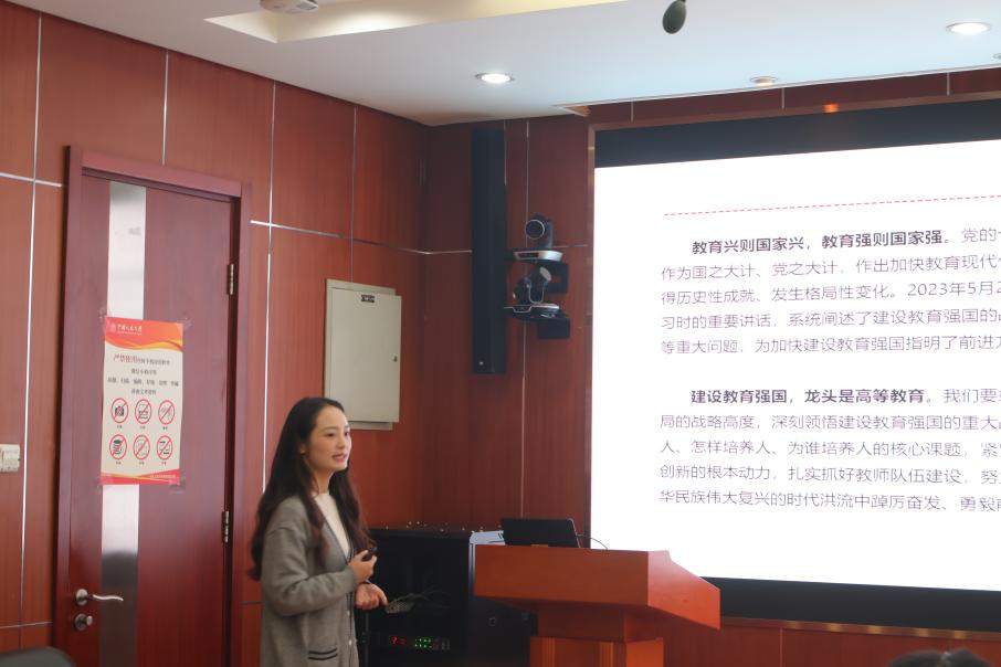 接着,刘姜涛结合“十个以”,领学了中共中国人民大学委员会今年9月在《求是》杂志上发表的《走好建设中国特色世界一流大学新路 为加快建设教育强国贡献力量》一文。她表示,“教育兴则国家兴,教育强则国家强”,教育是国之大计、党之大计;建设教育强国,龙头是高等教育,要基于“高等教育如何高质量发展”的思考,牢牢把握“培养什么人、怎样培养人、为谁培养人”这一教育根本问题。