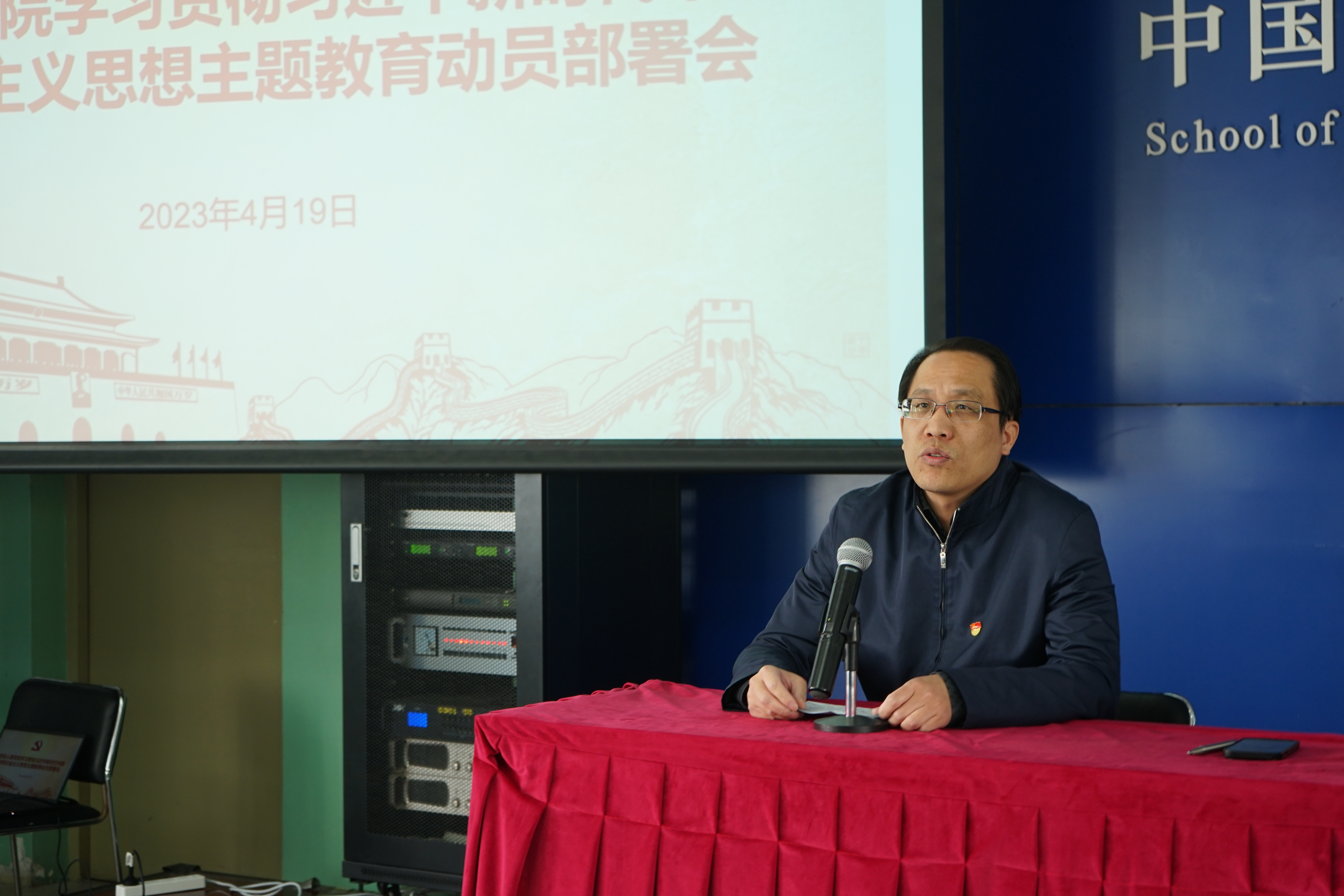 唐鑛首先代表学院党委作动员部署。他指出,开展学习贯彻习近平新时代中国特色社会主义思想主题教育,是贯彻落实党的二十大精神的重大举措,是推动学习贯彻习近平新时代中国特色社会主义思想走深走实的重中之重。他强调,学院全体党员干部、师生员工应认真学习领会习近平总书记重要讲话精神,全面贯彻落实党中央和学校党委的部署要求,扎实推动主题教育开展,牢牢把握“学思想、强党性、重实践、建新功”的总要求,着力解决理论学习、政治素质、能力本领、担当作为、工作作风、廉洁自律等六方面突出问题,努力在以学铸魂、以学增智、以学正风、以学促干方面取得实实在在的成效。最后,他介绍了赌博网站大全导航站 主题教育的相关安排和特色做法,不划阶段、不分环节,把理论学习、调查研究、推动发展、检视整改、建章立制各项工作贯通起来,有机融合、一体推进,并介绍了各项工作的重点任务。