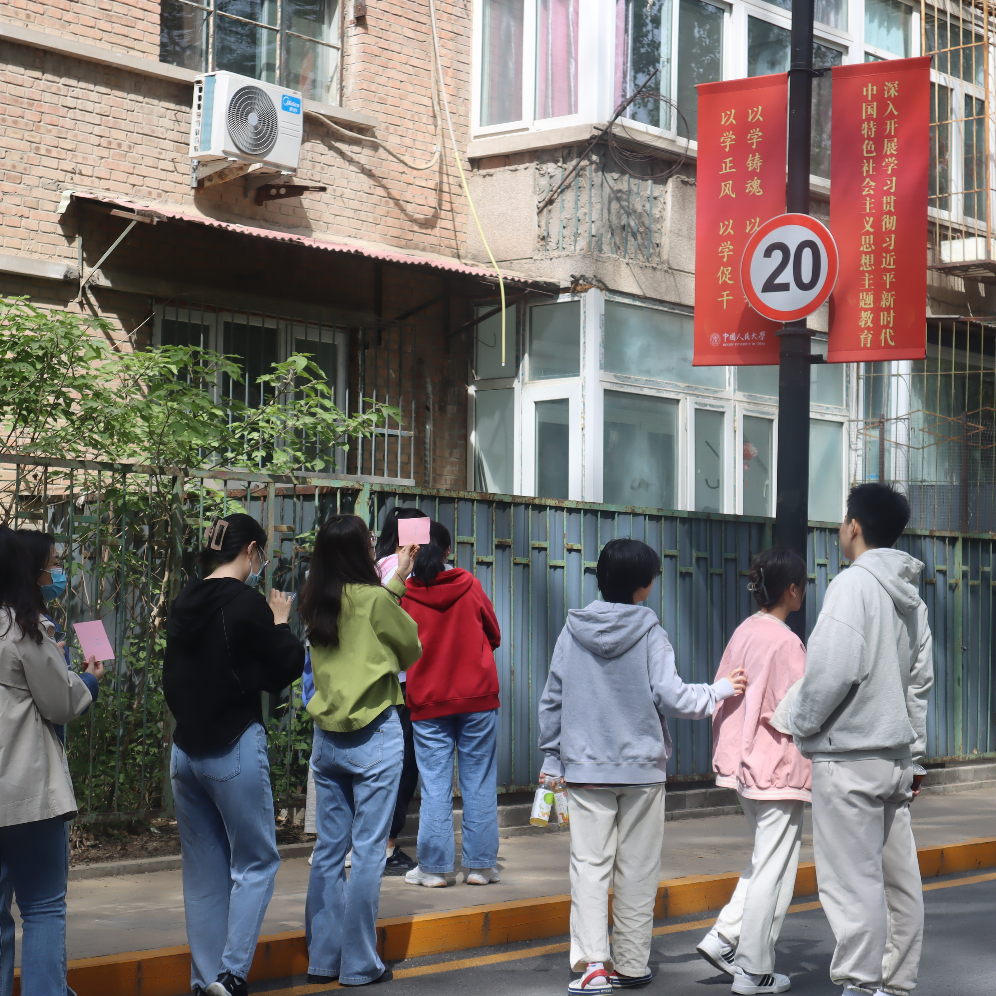 从明德广场到求是楼前,从知行的牡丹花圃,到东风的紫藤小院,同学们在校园内穿梭、观察、搜寻,收获了劳人文创惊喜,展现了团结协作的友谊。