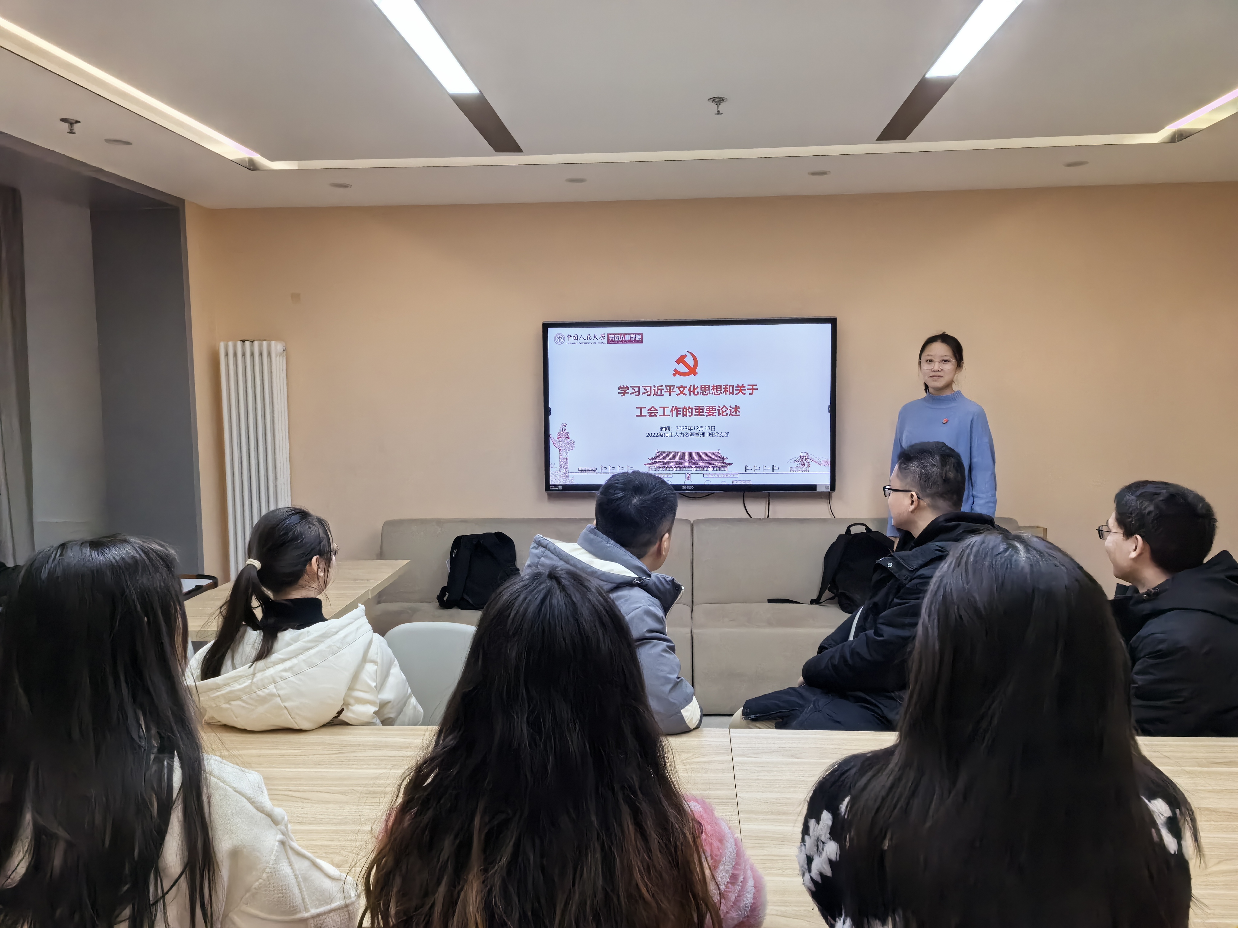 2023年12月18日,赌博网站大全导航站 2022级硕士人力资源管理1班党支部开展“学习习近平文化思想和关于工会工作的重要论述”主题党日活动。本次活动由党支部副书记杨欣悦主持,支部党员及入党积极分子共同参加。