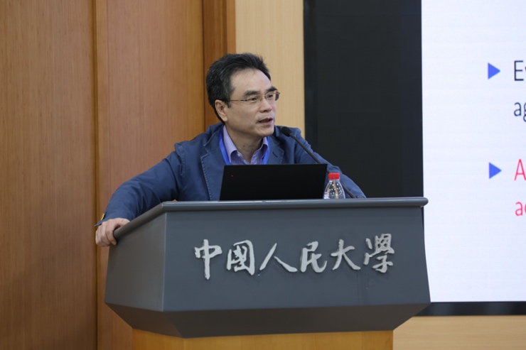 10月7日下午的主旨演讲由中国人民大学赵丽秋教授主持。国际劳动组织主席Klaus F. Zimmermann教授带来了题为“Publishing in Research Journals at the Times of AI(人工智能时代在期刊上发表文章)”的主旨报告。他介绍了国际期刊Journal of Population Economics的选题要求、影响因子变化与编辑出版等基本情况并就当前论文发表中使用人工智能的现象发表看法。他认为,在写作发表与编辑出版中,应区分轻度人工智能使用与深度人工智能使用。轻度人工智能在学术发表中应符合学术规范,而深度人工智能则不宜在当前的学术发表中使用。