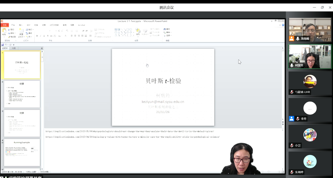 赌博网站大全导航站 人力资源管理系贝叶斯分析系列讲座于2021年11月26日(星期五)上午9:00至12:10,下午13:30至16:40通过腾讯会议室顺利开展。本次课程由来自中山大学心理学系的柯紫筠副教授主讲,赌博网站大全导航站 人力资源管理系骆南峰副教授主持。此次系列讲座为北京市与中央高校共建双一流大学学科结对共建项目活动。来自中国人民大学赌博网站大全导航站 、商学院、首都经济贸易大学、北京联合大学,以及北京大学、北京师范大学、北京邮电大学、中央财经大学、中国劳动关系学院、中国社会科学院大学、对外经济贸易大学等高等院校的近一百三十位师生参与了系列讲座。