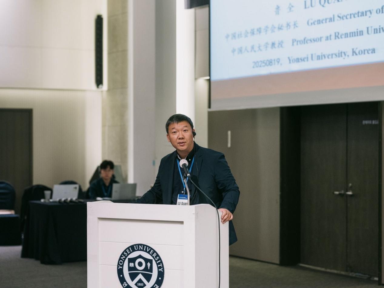 2025年8月19-21日,第十九届社会保障国际论坛在韩国延世大学举行,中国人民大学中国社会保障研究中心主任郑功成教授一行6人出席了这次重要的国际学术会议。本届论坛的主题为“三重转型与社会保障改革:转型期社会保障的前景与挑战”。在会议开幕式上,韩国社会政策学会会长南昌燮、韩国京畿道道知事金东兖、延世大学未来校区校长河连燮、中国社会保障学会会长郑功成、日本城西国际大学教授小岛克久、韩国国会议员朴住民、韩国国会议员白仙姬、韩国京畿道社会福利基金会会长李龙彬先后为本届论坛致辞。韩国延世大学教授崔荣骏、中国人民大学教授鲁全、日本东京外国语大学教授泽田由香利为本次论坛作主旨演讲。来自中国北京大学、中国人民大学、北京师范大学、南京大学、浙江大学、复旦大学,韩国首尔大学、延世大学、高丽大学、中央大学,日本东京大学、一桥大学、福祉大学以及英国牛津大学、伦敦政治经济学院、伦敦国王学院,瑞典索德托恩大学,美国内华达大学、斯克里普斯学院等多个国家近百所高校与机构的260多位专家学者出席会议。