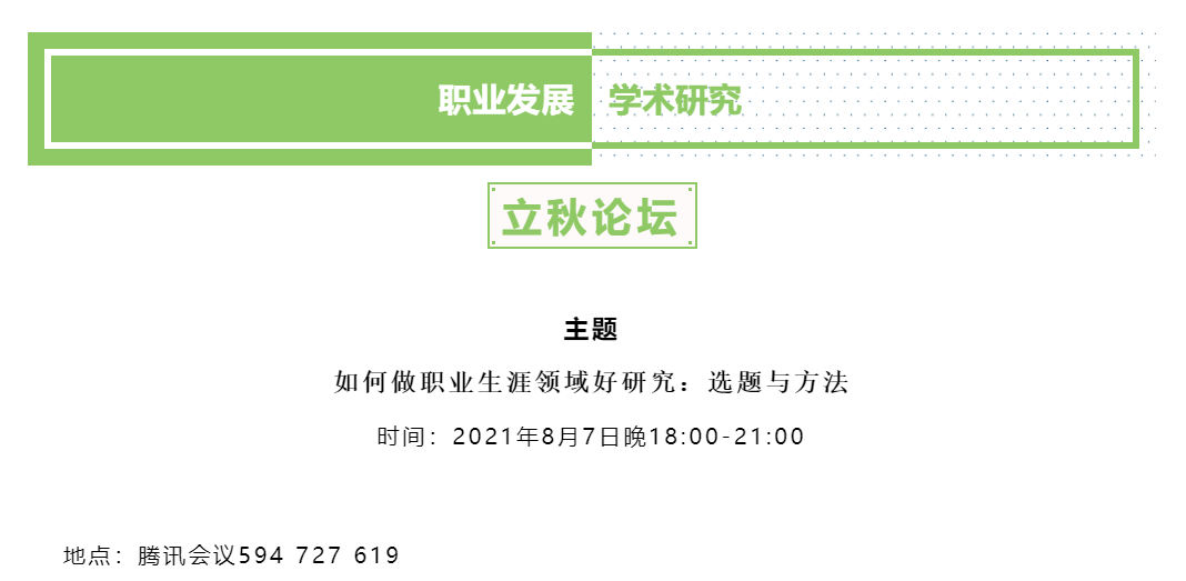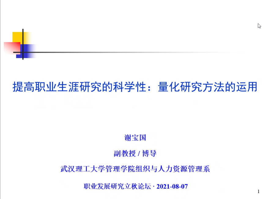 赌博网站大全导航站 职业开发与管理系、劳动经济学会职业开发与管理分会、中国人民大学组织行为学研究所和武汉理工大学管理学院组织与人力资源管理系主办的2021年职业发展立秋论坛暨职业研究沙龙(第9期)于2021年8月7日(星期六)晚上18:00至21:30借助腾讯会议的线上途径顺利开展。