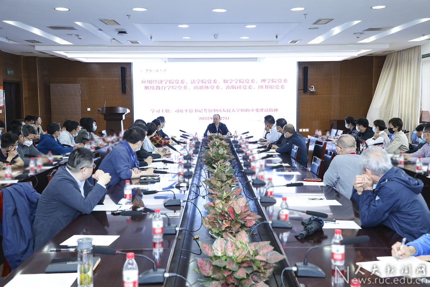 4月27日上午,中国人民大学副校长王轶到法学院党委、应用经济学院党委、数学学院党委、理学院党委、继续教育学院党委、离退休党委、图书馆党委、出版社党委宣讲习近平总书记在中国人民大学考察时重要讲话精神,法学院党委书记兼副院长杜焕芳主持会议。