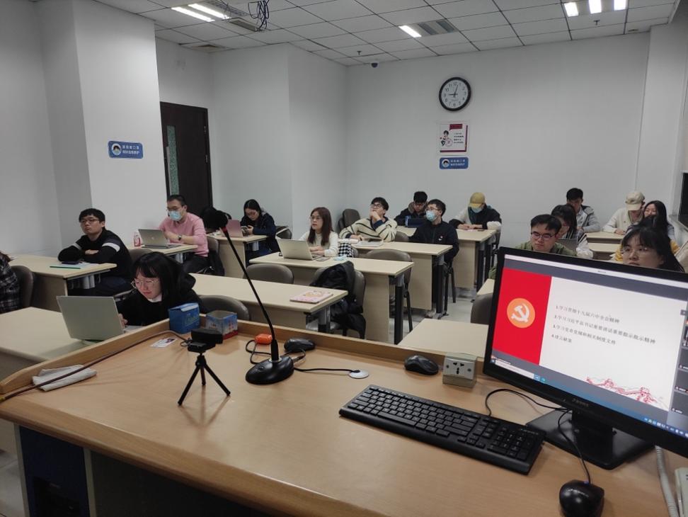 活动最后,支部书记朱建军总结到,党的十九届六中全会审议通过了《中共中央关于党的百年奋斗重大成就和历史经验的决议》,该项决议是对中国共产党过去百年所取得的辉煌成就的高度概括,也是对中国共产党过去百年所积累的经验教训的高度总结,更是对中国未来战略发展的正确指引。作为党员,应时刻学习党的历史,做到“学史明理、学史增信、学史崇德、学史力行”,勿忘昨天的苦难辉煌,无愧今天的使命担当,不负明天的伟大梦想,为实现第二个百年奋斗目标贡献青年力量。同时他提到,十九届六中全会审议通过了《关于召开党的第二十次全国代表大会的决议》,党的二十大是我们党进入全面建设社会主义现代化国家、向第二个百年奋斗目标进军新征程的重要时刻召开的一次十分重要的代表大会,是党和国家政治生活中的一件大事。作为青年党员,应当积极参与党的二十大的筹备工作,以实际行动迎接党的二十大。