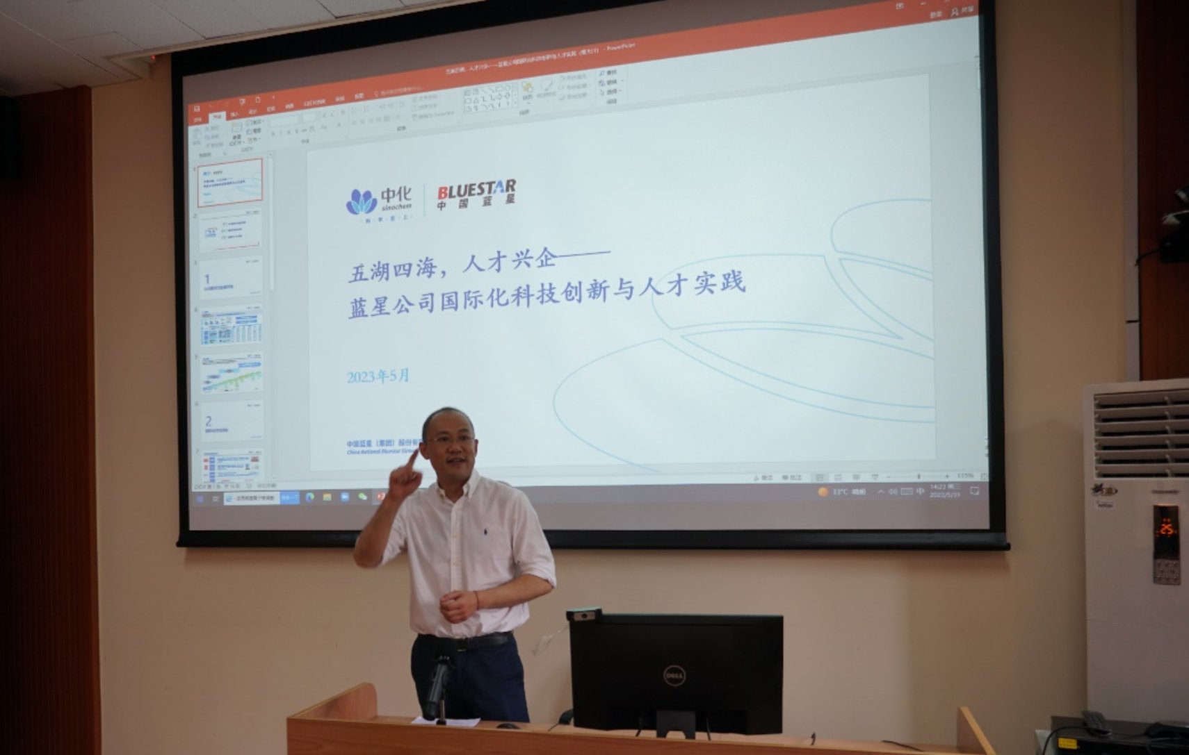 接下来,中国蓝星(集团)股份有限公司党委副书记、副总经理董大川(赌博网站大全导航站 2006届校友)从业务领域、发展历史等方面介绍了蓝星公司的基本概况,并分享了蓝星公司在全球科技创新与人才管理实践方面的工作亮点。