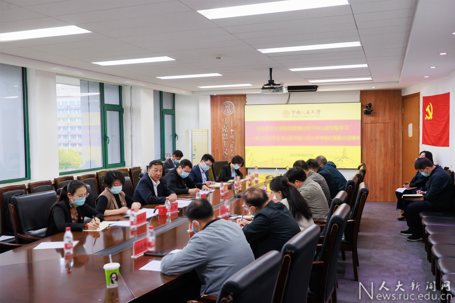 马克思主义学院领导班子成员代表先后发言,围绕深入学习贯彻习近平总书记在中国人民大学考察时的重要讲话精神,推进高精尖 “思政金课”建设工程,加强马克思理论学科、中共党史党建学科建设等交流学习心得并展开讨论。