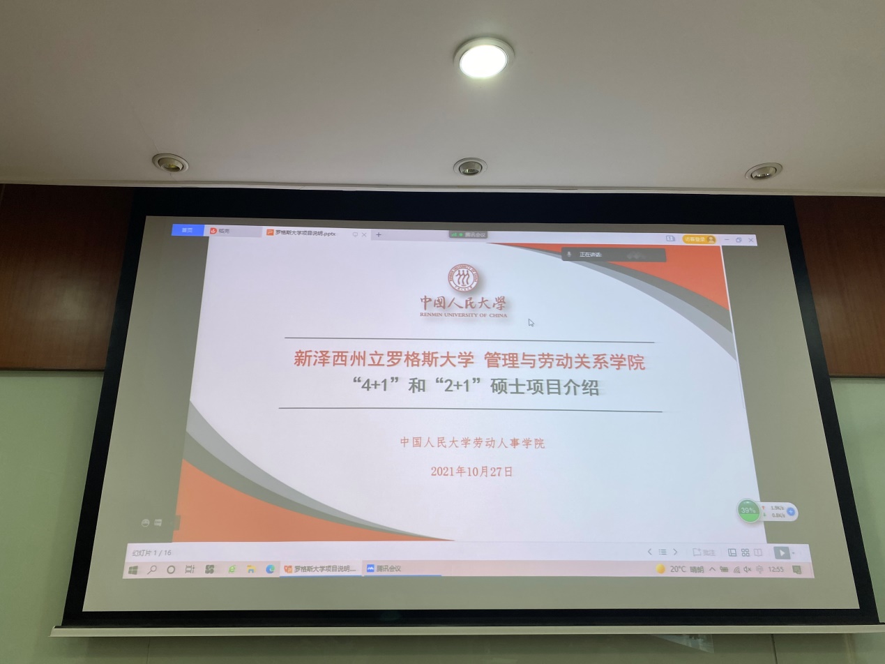 10月27日中午,赌博网站大全导航站 举办与美国罗格斯大学管理与劳动关系学院“4+1”、“2+1”硕士项目第二次宣讲会,会议以线上+线下形式同时举行。会议由外事秘书王语今老师主持,学院国际交流与合作中心主任刘相波老师参加了本次活动。
