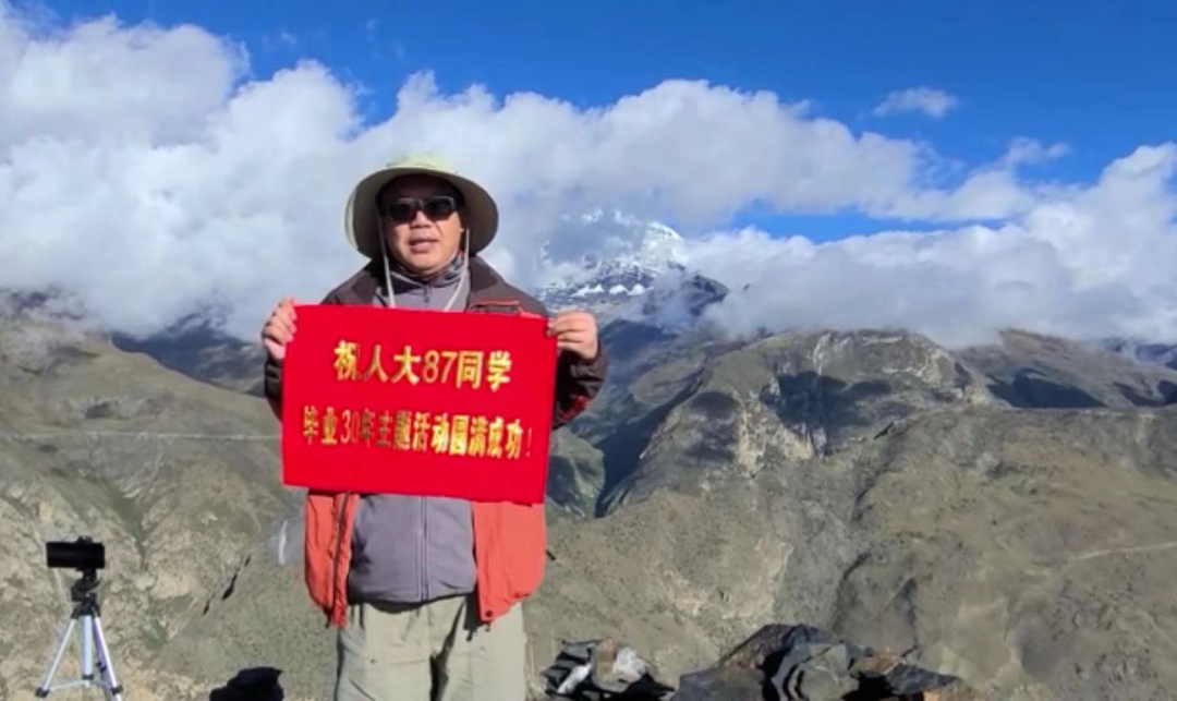 赌博网站大全导航站 劳动经济专业1987级校友张斌将在西藏徒步旅行的影像资料以视频形式发送到现场,在海拔6785米的西藏高原祝福老师们和同学们“扎西德勒”。