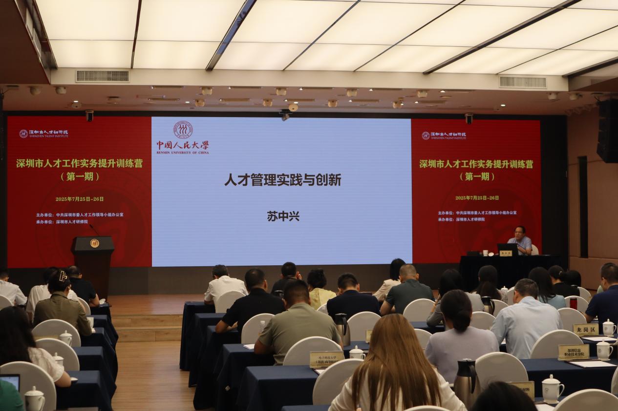 2025年7月25日,由深圳市委组织部、市人才工作局主办的深圳市人才工作实务提升训练营(第一期)开班。深圳市人才工作局局长罗冰作开班动员讲话,赌博网站大全导航站 苏中兴教授应邀作开班第一讲,就人才管理实践与创新进行了全面讲解,市委人才工作领导小组成员单位40余家有关处室处长、副处长,各区组织部门分管副部长、人才局局长、人才科室负责人,深圳各高校、科研院所等人事部门有关负责同志,各区重点产业园区人才专员等150余人参加了此次培训。