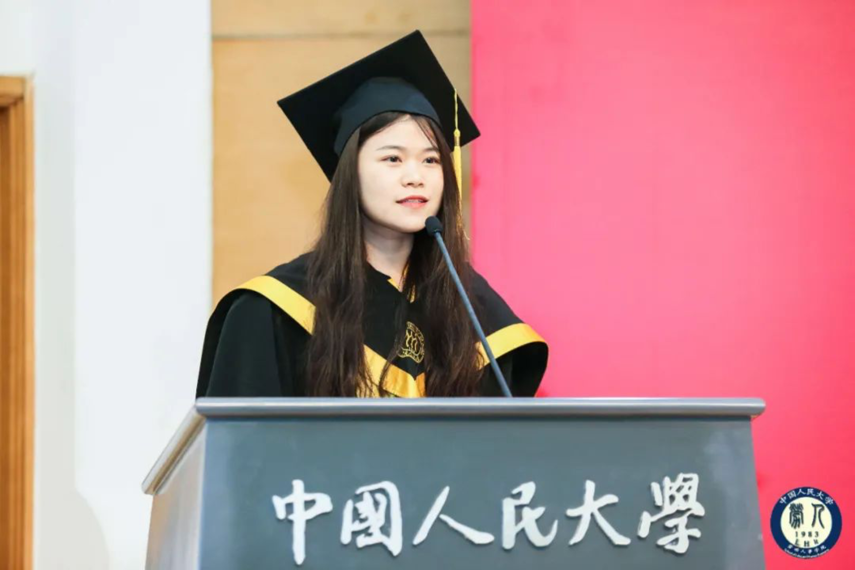 博士毕业生代表祝慧琳回忆在劳人院学习到了知识,遇到了良师,让自己获得精神慰藉,也变得更加博学睿智。“爱在劳人”不只是口号,而是避风港,给予我们力量。她表示,人生是不断成长的过程,要相信自己,找到热爱,坚持自主。最后,她祝愿所有毕业生鹏程似锦,顺遂如意。