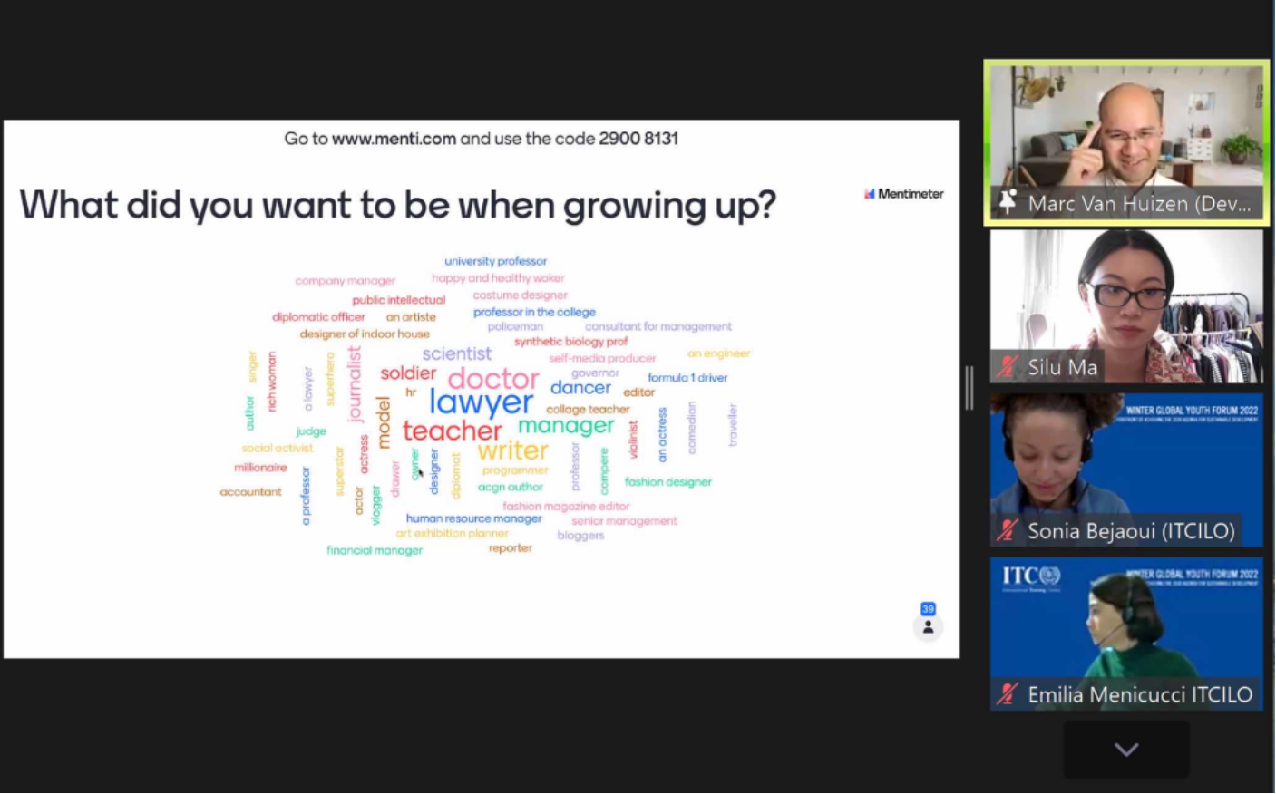 赌博网站大全导航站 积极响应国家“向国际组织输送人才”的号召,高度重视与国际组织的合作与交流,为劳人学子提供多种国际交流和学习的机会,打造“全球型劳人”。2022年2月,联合国国际劳工组织国际培训中心冬季全球青年论坛如期举行,这是赌博网站大全导航站 第四年参加该项目,今年共有10名本硕学子参与其中。2月7日,本届“冬季全球青年论坛”正式开始。论坛负责人Carlotta女士介绍了本次冬令营的项目概况、学习内容、任务要求等。同学们对未来两周的学习有了初步了解。