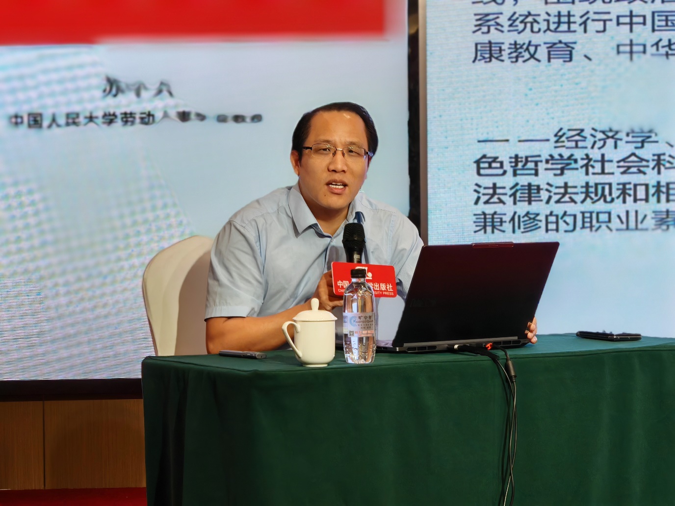随后,中国人民大学吴玉章课程思政名师工作室(人力资源管理)首席教师苏中兴教授就《如何讲好人力资源管理课程思政》进行了讲座。他首先强调了高校提高人才自主培养能力,以及建设自主学科体系、学术体系和话语体系的重要性。其次,他分享了《人力资源管理》课程思政的整体建设思路,并根据课程大纲着重阐述了每一章可能涉及的思政重点要点。最后,苏中兴教授还就如何将中华优秀传统文化和新时代人才强国战略融入到人力资源管理课程思政中进行了分享,并结合以往课上的教学实践,介绍了相关经典例子。