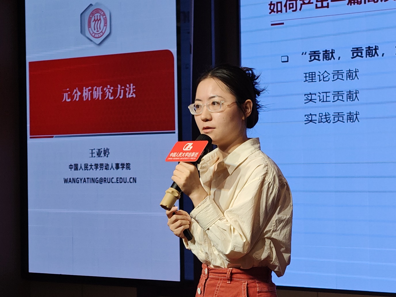 随后,王亚婷讲师进行了题为《元分析研究方法》的分享。她系统介绍了元分析的发展历史,并总结了高质量元分析研究的标准和特点。她指出,元分析作为一种综合多项研究结果的统计方法,不仅能够提供更具说服力的结论,还可能带来突破性的理论创新、提供有价值的实践指导。她详细介绍了元分析的数据编码和数据分析技术,并强调高质量的元分析不仅需要在方法上精益求精,还需要在研究过程中保持客观性和透明度。