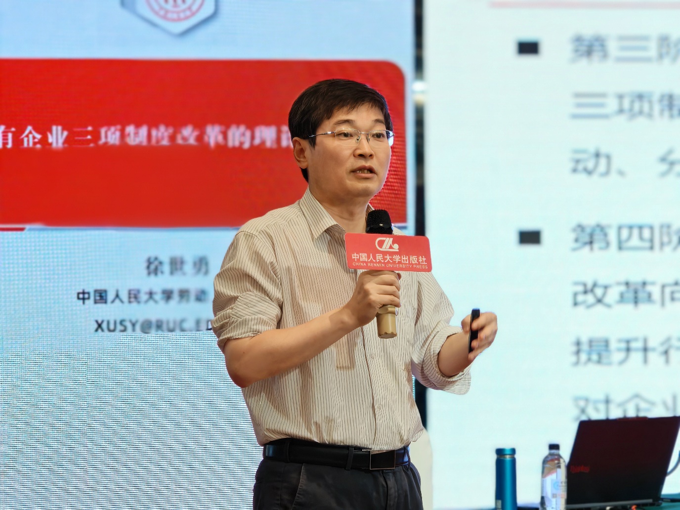 7月27日下午,徐世勇教授以《国有企业三项制度改革的理论与实践》为主题,讲解了国有企业改革的相关内容。徐世勇教授首先介绍了“三项制度改革”的含义和发展演化历程。接着,徐世勇教授分享了自己在学习国有企业进行改革过程中相关政策文件的经验和心得。徐教授通过实际案例,详细讲述了国有企业在三项制度改革过程中遇到的具体困难和采取的策略。徐世勇教授的分享为与会者提供了学者角度思考重大实践问题的参考样例,以帮助他们更好地理解国企改革与发展,并做出学者的贡献。