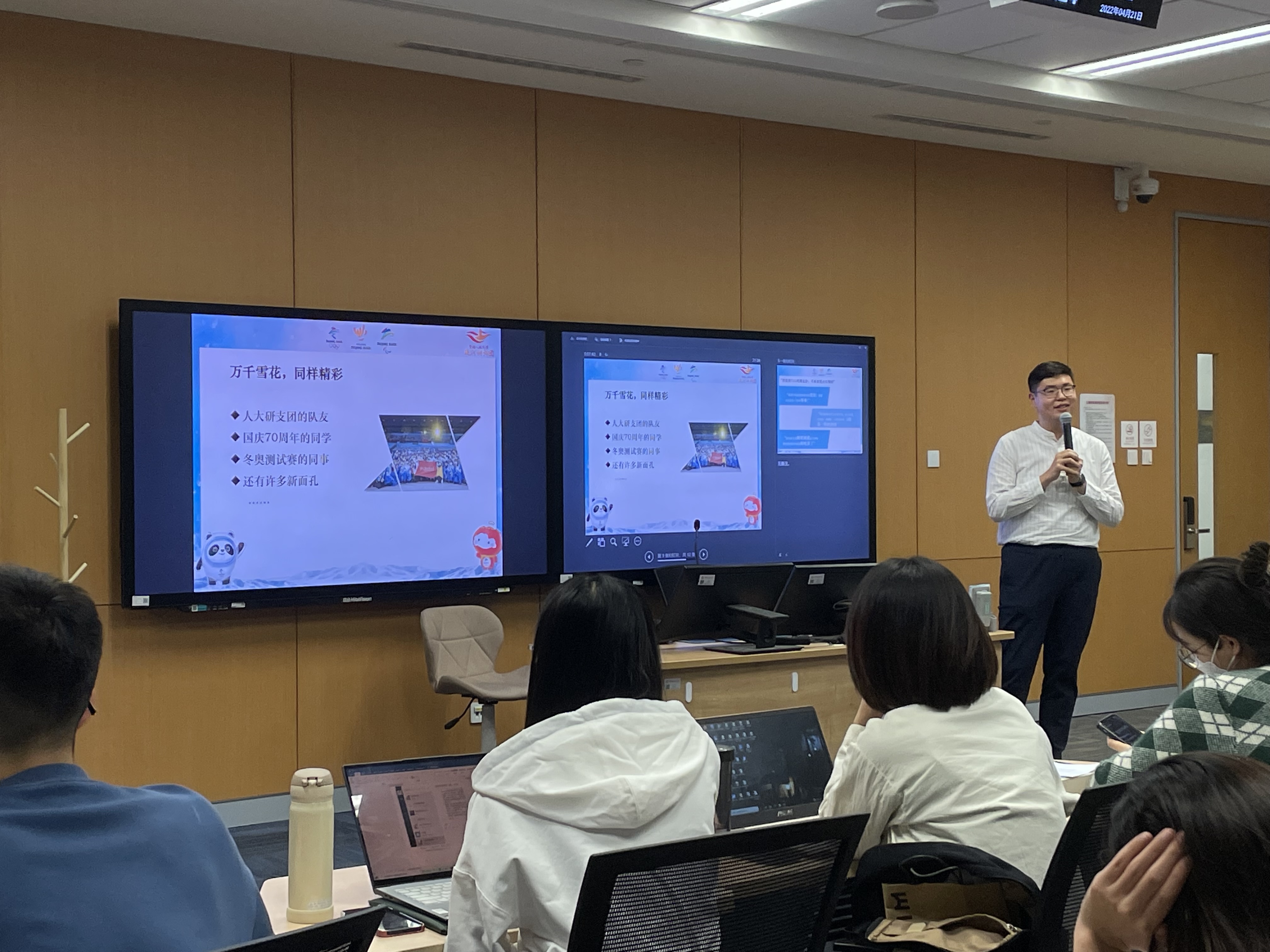 随后,北京冬奥会首都体育馆场馆群赛会志愿者、中国人民大学延河讲师团(冰雪分团)成员、支部党员姜龙钰同志为大家分享他的冬奥志愿服务经历。姜龙钰同志以“奏响美妙序曲,共赴冰雪之约”为题,讲述了他与注册领域身份注册卡的故事。