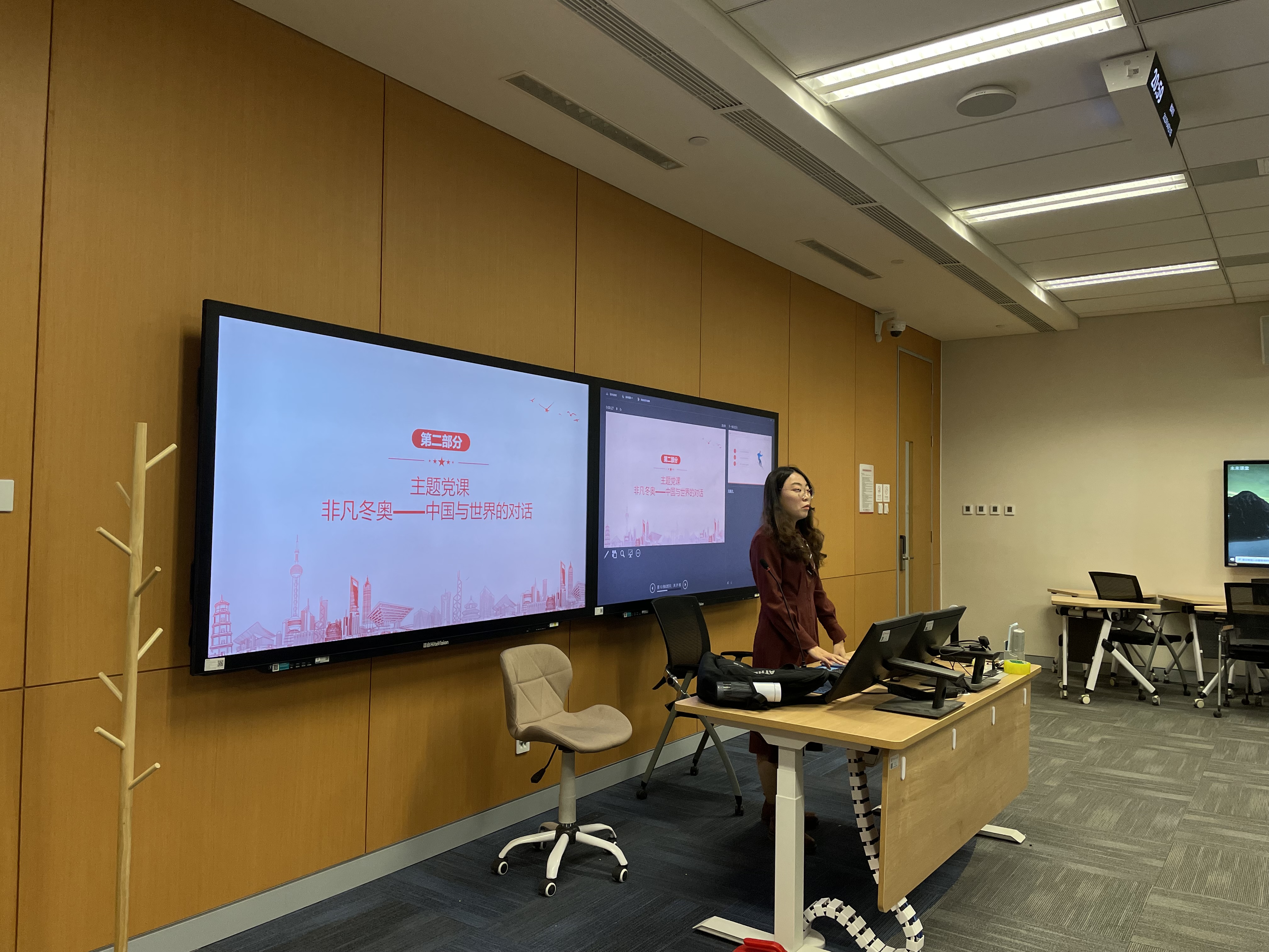 回顾冬奥魅力后,支部书记袁春宇以“非凡冬奥——中国与世界的对话”为题,在支部内开展了一次专题党课。袁春宇从“承诺兑现彰显道路优势”“中国方案蕴含发展理念”“精神力量展现大国风范”三个方面,深刻阐述了北京冬奥会不仅是一届精彩、非凡、卓越的奥运盛会,更是我国在重要历史节点与世界的一场对话,是展现国家形象、促进国家发展、振奋民族精神的重要契机。