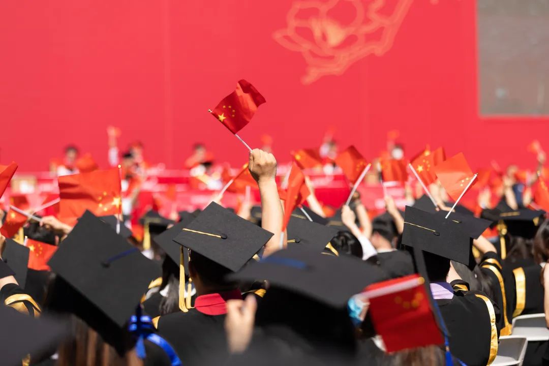最后,毕业典礼在《中国人民大学校歌》的嘹亮歌声与一声声“青春向党、不负人民”的欢呼中落下帷幕。