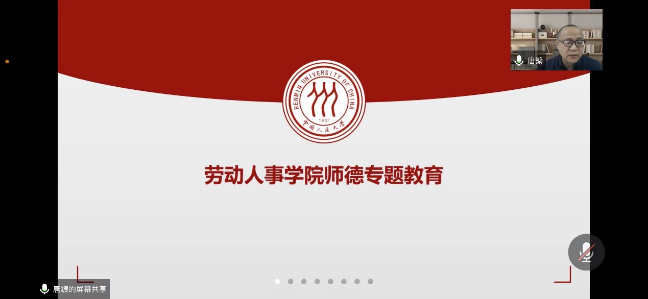 唐鑛以《关于加强和改进新时代师德师风建设的意见》等中央及教育部相关政策文件和中国人民大学《中国人民大学师德建设长效机制实施办法(试行)》为切入,解读并传达了师德师风建设相关文件精神,重点关注文件提出的对加强师德师风建设的总体要求,以及如何落实指导思想、基本原则、总体目标。并结合我校实际,进一步解释校内师德师风建设的具体举措。