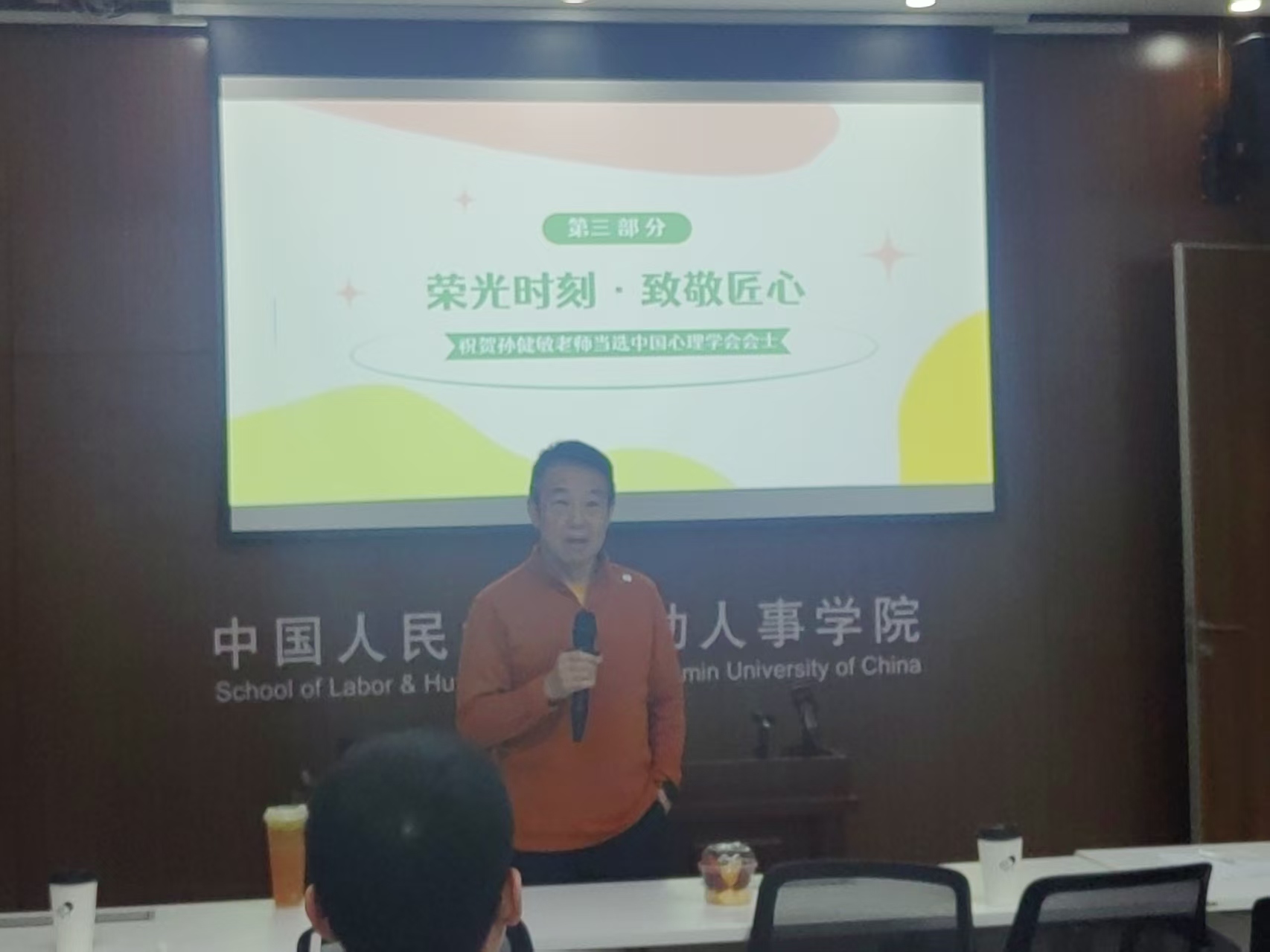 活动第三环节为“荣光时刻・致敬匠心”。全体教职工共同庆贺孙健敏老师当选“中国心理学会会士”。学院向孙健敏老师致以诚挚祝贺,孙老师也向学院表达由衷感谢。他深情回顾了在赌博网站大全导航站 三十余年的执教岁月,并勉励大家在专注工作的同时,不忘关怀同事、平衡生活。随后,孙老师亲手切下分工会精心准备的庆祝蛋糕,个人荣誉与集体喜悦在此刻交融,现场洋溢着温馨与感动。