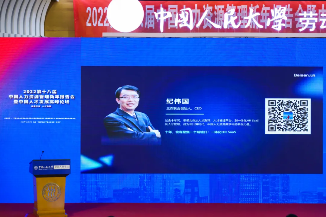 北森云计算联合创始人、CEO纪伟国发表了《2022 人力资源数字化的未来十年》的主题演讲,详细介绍并展示了北森一体化HR SaaS以及人才管理平台iTalentX。纪伟国指出,人力资源数字化的三大趋势:一是从分散的单品走向一体化HR SaaS,构建一致的体验;二是从标准化HR SaaS走向基于“低代码PaaS”的HR SaaS;三是从“HR管理”优先,走向为员工而设计,特别强调应兼具高效、愉悦、温暖的特质。纪伟国表示,北森一直在路上,希望和大家携手走近人力资源数字化的世界。