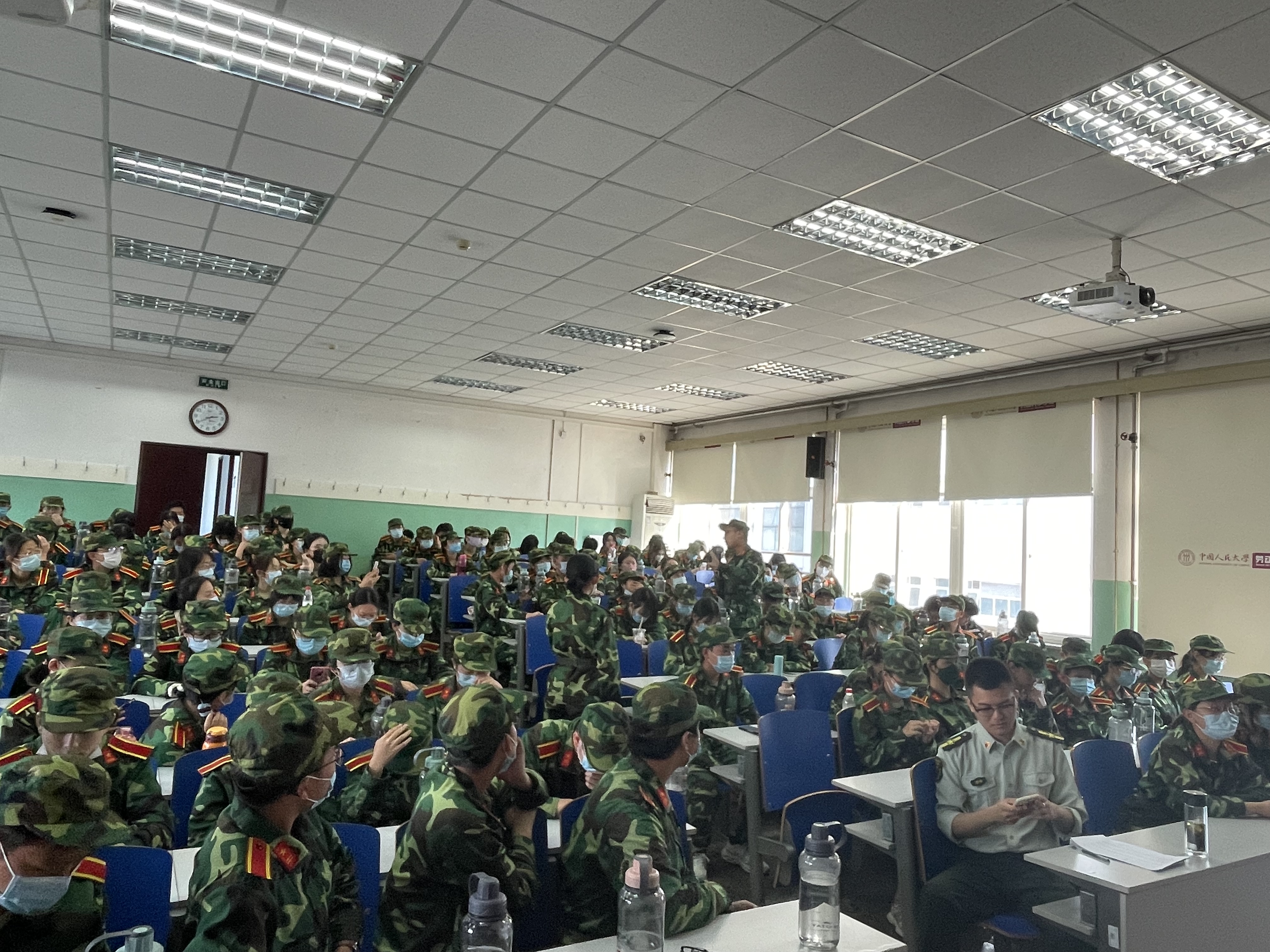 2022年9月21日,由赌博网站大全导航站 2022级本科生、马克思主义学院2022级本科生组成的军训团五连在求是楼440报告厅开展理论学习。