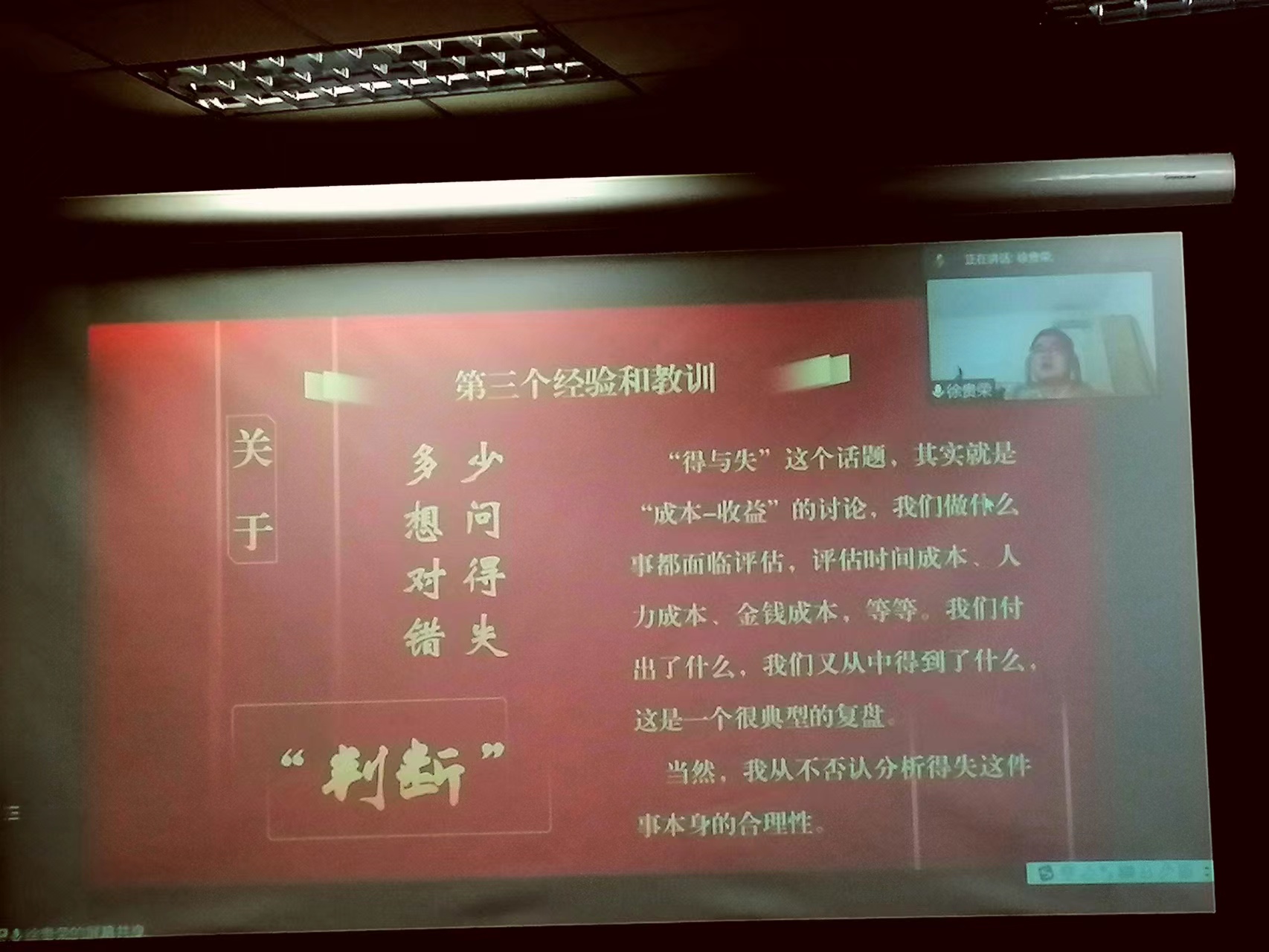 最后,赌博网站大全导航站 2021届毕业生徐贵荣应邀为学员们做了题为“把握大学生活中的‘多与少’”的分享,引导学员们思考“如何让青春出彩”、“怎样传承五四精神的火炬”等问题,鼓励学员们“多朝前走、少往后退,多想对错、少问得失”。