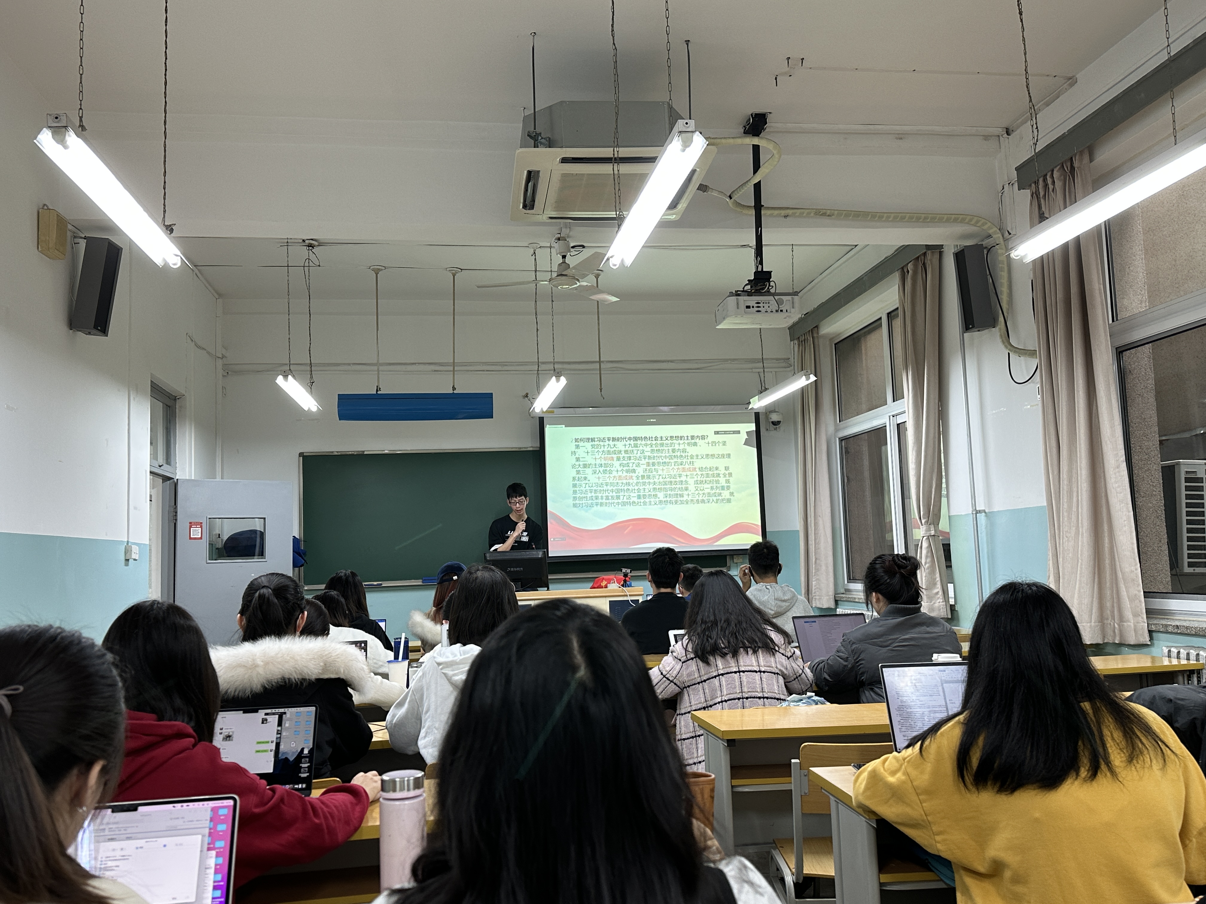 首先,吴潇领读《党的二十大报告学习辅导百问》,从“如何理解党的二十大的主题”“如何理解习近平新时代中国特色社会主义思想的主要内容”“怎样理解健全覆盖全民、统筹城乡、公平统一、安全规范可持续的多层次社会保障体系”三部分出发,引领支部成员深入学习党的二十大精神,并结合社会保障专业知识探讨学生应如何发挥自身能力为全面建设社会主义现代化强国做出贡献。