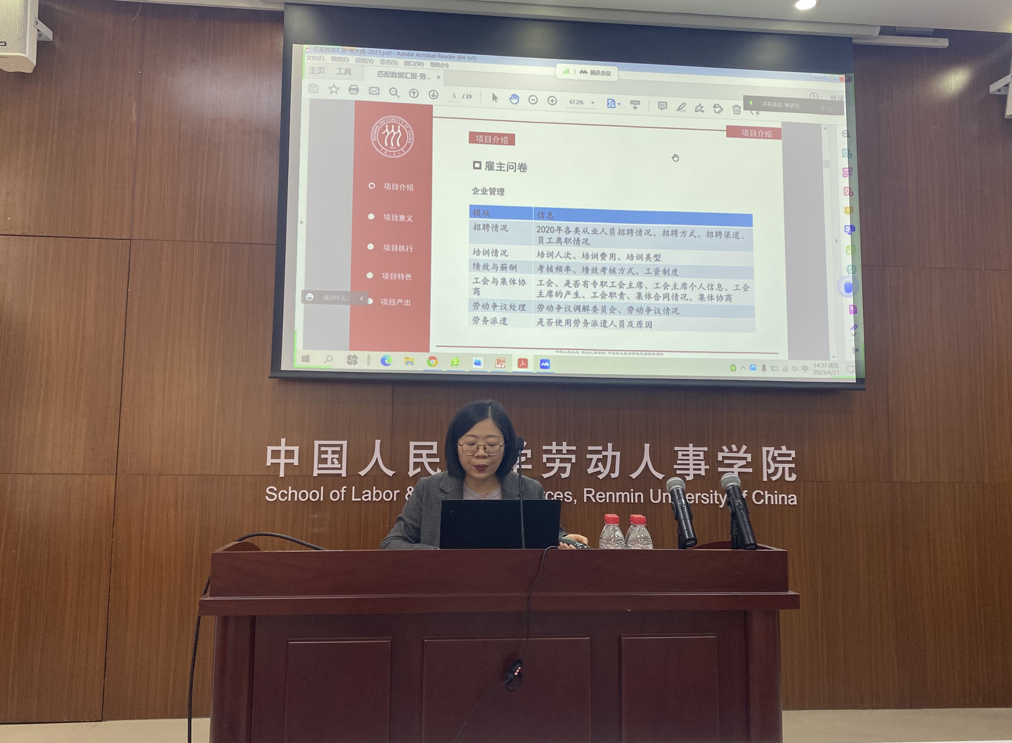 宣讲会由赌博网站大全导航站 劳动经济系主任赵丽秋副教授主持。首先,她简要介绍了调查项目的总体情况,包括问卷调查的结构和内容、项目特色和主要产出成果。