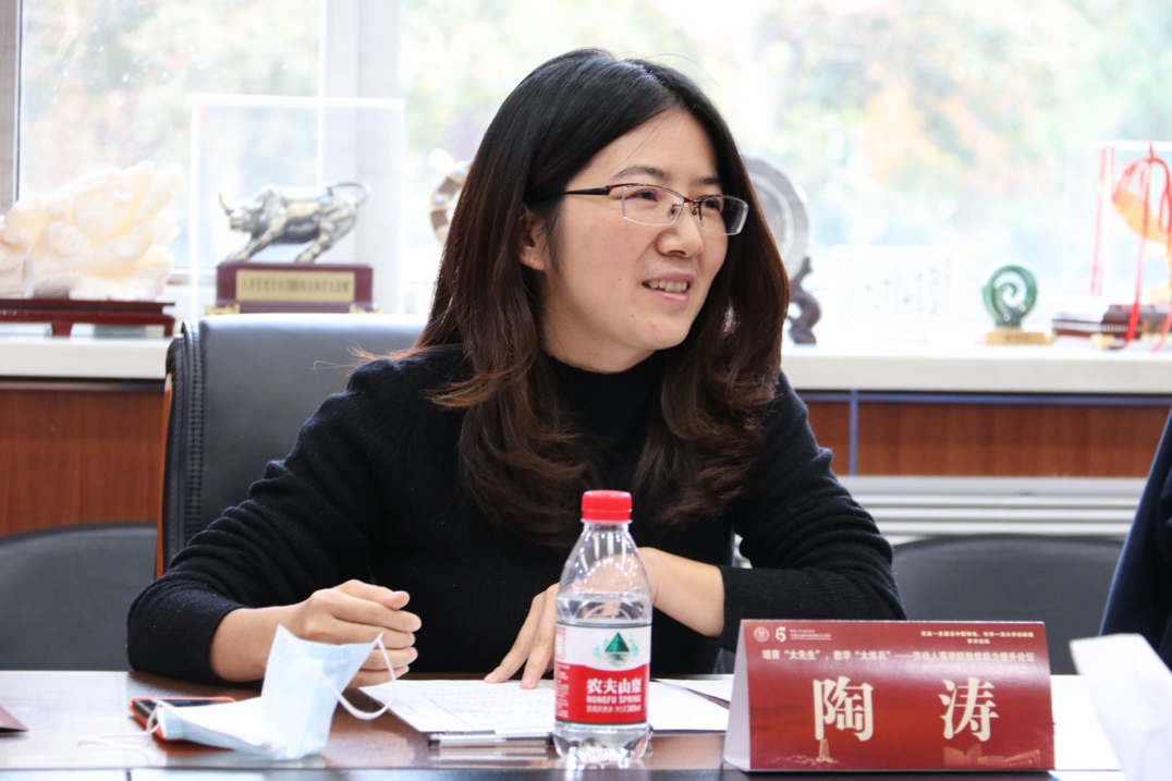 与会老师对公开课环节进行点评并提出建议。中国人民大学工会兼职副主席、社会与人口学院陶涛副教授指出,各位讲授公开课的老师落落大方、表达流畅;讲课内容厚重,有深度、有营养、有厚度;教学经验丰富,备赛用心,精心筛选出来的案例体现出高超的教学水平;特别是课程思政元素流畅恰当、衔接自然。她建议:要把课程思路更好展现出来,拓展下节课预告;增加思考题和参考文献,思考题主要发挥拓展作用,参考文献则体现课程前沿性;让板书与PPT更好结合;通过音视频方式呈现授课内容;加强互动,让讲授式变成启发式,抓住学生注意力;要有语速变化,在提问环节给学生留思考时间等。