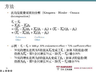 张昊老师首先从动机层面介绍了自己以统计描述方法研究医保费用的原因。张昊老师指出传统非常受注重的因果效应评估难以回答大多数生活中以及政策制定过程中需要回答的问题,统计描述虽然看起来简单,但它能回答的问题很多时候非常重要。最近几十年中国的医保费用增长十分明显,如果想要减缓医保费用增长,一个非常重要的基础研究就是要能识别医保费用增长的驱动因素有哪些,这不仅对于我们自己的生活有切实的影响,对政府政策制定也有重要的参考意义。但仅仅依靠生活经验和简单的统计数据难以准确识别卫生费用增长的驱动因素,我们有必要使用稍微复杂一些的统计描述。随后张昊老师结合具体研究为大家介绍了直接分解费用、次均住院费用回归分解、病人细分分析等方法。会议中多位老师就具体的指标与张昊老师进行询问与探讨。