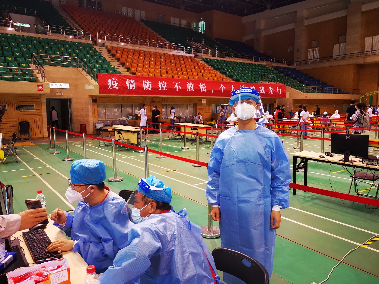 面临北京疫情的“大考”,防疫工作刻不容缓。近日,赌博网站大全导航站 在教学区居住和在校内值守的6名教职工主动参与学校全员核酸检测志愿者工作,为全校师生做好服务保障。