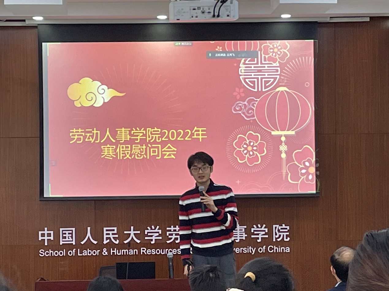 首先,杨伟国院长向同学们致以新年祝福。杨院长提到,这次因为科研奋斗或为冬奥奉献而离开父母的春节将成为同学们生命中宝贵的经历,希望同学们好好珍惜。与此同时,当前北京疫情形势不容放松,提醒同学们注意好疫情防护,关注疫情发展情况。最后,杨伟国院长再次祝愿各位同学新年快乐,提醒同学们为下一学期学习生活早做准备,同时叮嘱学院冬奥志愿者们在志愿服务工作中要做好疫情防护,积极面对各种风险和挑战。