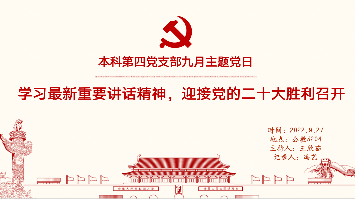 本科第四党支部开展“学习最新重要讲话精神,迎接党的二十大胜利召开”主题党日活动