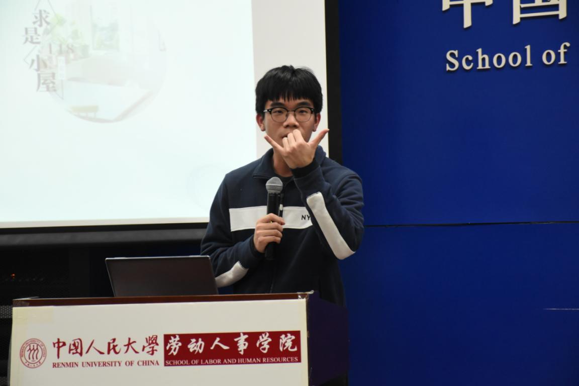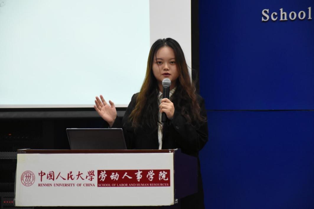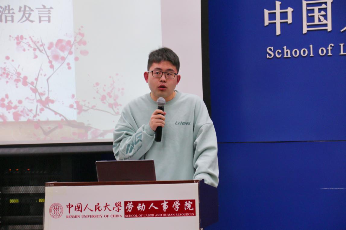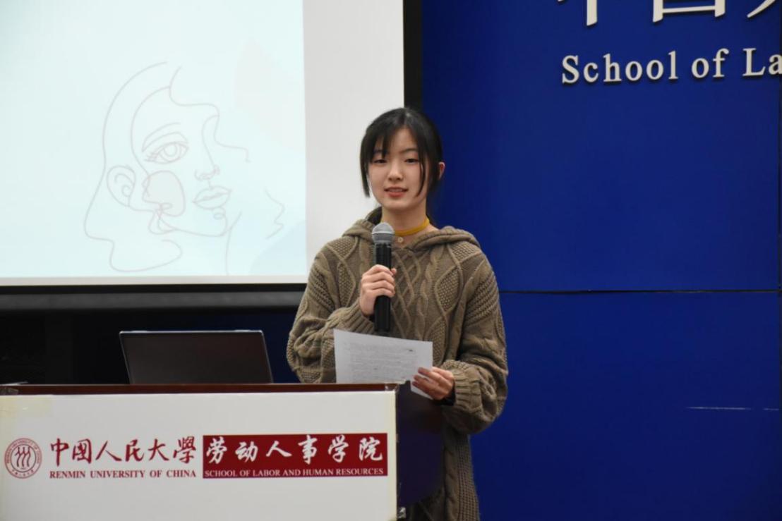 组织部学生骨干负责人隋意首先回顾了组织部本学期的工作情况,从基础团务、奖助学金申报到部门建设培训,组织部一直默默奉献,为学院团学工作贡献力量,并且也取得了丰硕的工作成果。同时,她强调了“劳人组织,坚如磐石”的部门宗旨,希望组织部的同学们能坚守初心,持续助力学院团学工作发展。最后,她为院会送上了真诚的祝福,并向大家了表达了真挚的感谢。