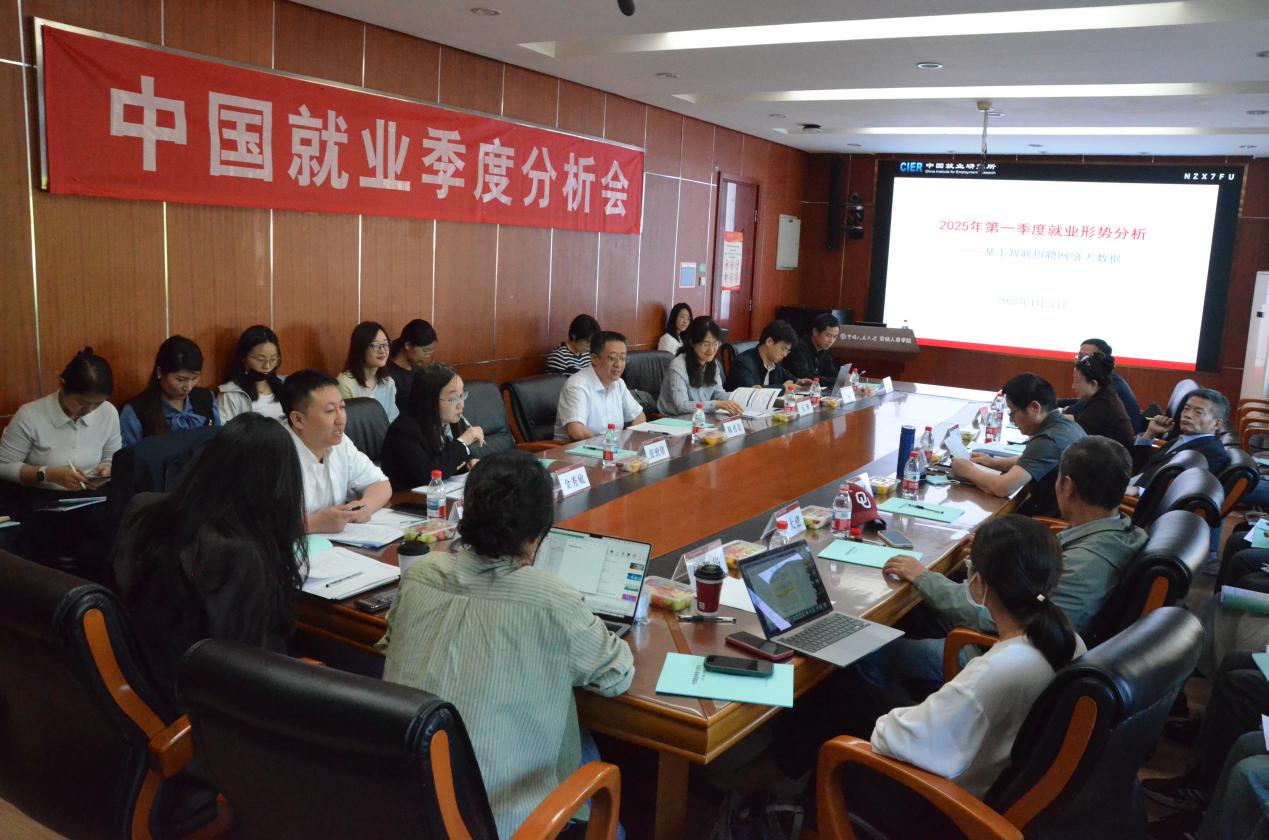 2025年4月27日,由中国人民大学中国就业研究所主办的2025年一季度中国就业季度分析会在赌博网站大全导航站 成功举办。人力资源和社会保障部就业促进司副司长陈勇嘉、国家统计局人口和就业统计司副司长吴珊、教育部学生司就业政策协调处副处长张致铭、教育部学生服务与素质发展中心就业工作领导小组办公室金秀敏副主任等政府部门领导及工作人员,智联招聘集团、苏州工业园区人力资源开发有限公司、58同城等公司专家以及中国人民大学中国就业研究所所长、赌博网站大全导航站 曾湘泉教授,经济学院雷达教授,中国就业研究所丁大建、耿林、陈轩研究员等20多位专家学者参会。曾湘泉教授主持了本次会议。