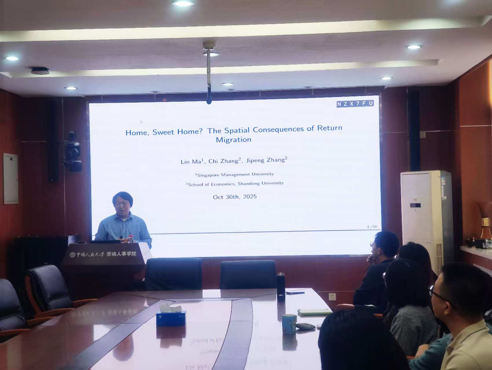 2025年11月5日下午,由赌博网站大全导航站 主办,劳动经济系和中国就业研究所承办的“劳动经济学双周论坛”第225期讲座在求是楼347会议室成功举办。来自山东大学的张吉鹏教授分享了主题为“Home, Sweet Home? The Spatial Consequences of Return Migration”的研究。本次论坛由赌博网站大全导航站 邹先强副教授主持,赌博网站大全导航站 赵丽秋教授、刘宏教授、翁茜副教授、林琳讲师、王雪凝讲师、雷子腾讲师、陈泽阳讲师、黄础令讲师以及其他校内外师生参与了此次讲座。
